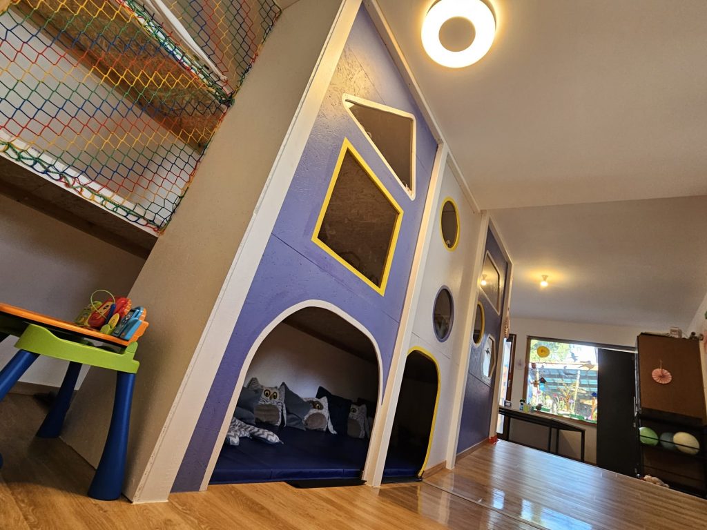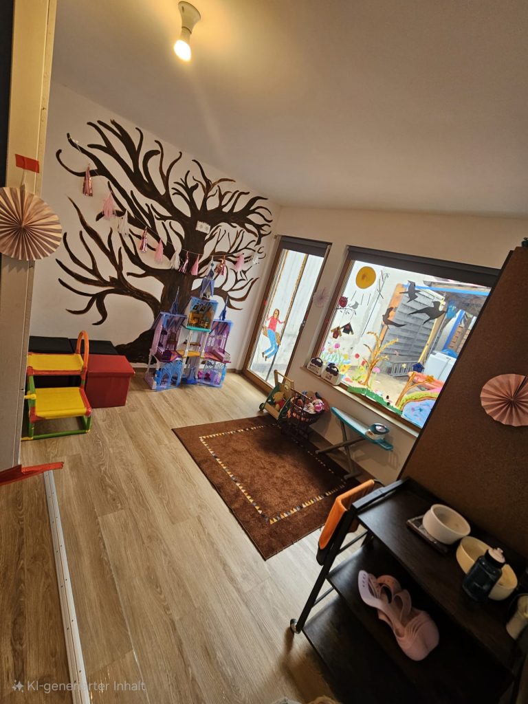 Unsere Kinderbetreuung bietet den Kindern auf rund 50 Quadratmetern drinnen viel Raum zum Spielen, Basteln, Toben und Lernen. Die Räume sind freundlich, kindgerecht eingerichtet und laden zum Entdecken ein.