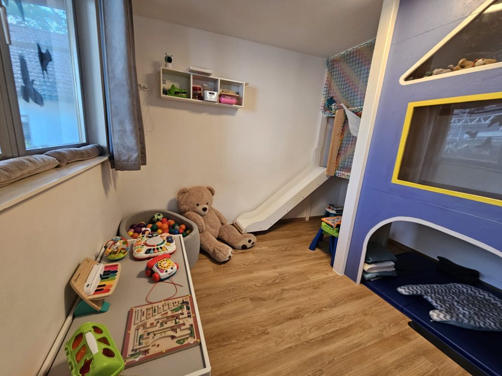 Wir sind stolz auf unseren großen Garten, in dem die Kinder täglich an der frischen Luft spielen können. Zusätzlich gibt es in unserer Straße einen öffentlichen Spielplatz, der nur etwa 500 Meter entfernt ist – perfekt für gemeinsame Ausflüge und noch mehr Bewegungsmöglichkeiten.